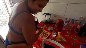 Indian milf bhabhi endures brutal doggystyle fuck with young devar's monster cock, deepthroat and natural tits shaking.