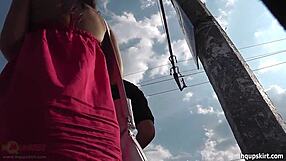 Bus stop upskirt reveals cute skirt and dress tease