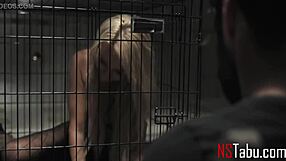 big tits milf in cage gets deepthroat