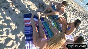 Girls Go Bold with Painted Body Bikinis Flashing for Beach Cash