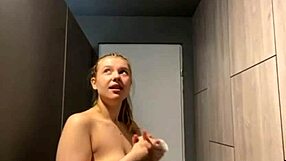 Hot blonde teen squirts in changing room with dildo