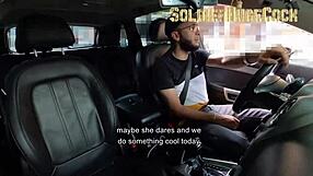 Big ass blonde gives sloppy deepthroat blowjob in car then takes creampie