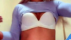 oh man, that busty trans babe just ripped her lingerie and started jerking off her big tits solo