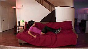 Maryana Kriguer viser stor brasiliansk røv i strømper og netstrømper under gaping fingerleg og monstre pik leg