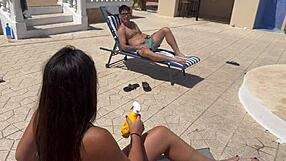 Bomba latina Canela Skin recibe duro por el culo en playa pública española
