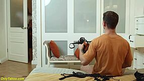 Skinny stepmom fists her gaping cunt deepthroat gags on rough choke first time