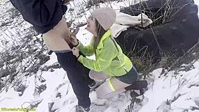 my horny girlfriend in miniskirt gets her pussy deep fucked by huge cock outdoors in snow while riding rough