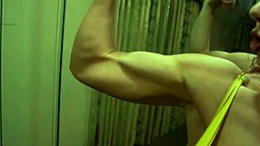 worship these muscular bodybuilder babe's bulging biceps in bikini