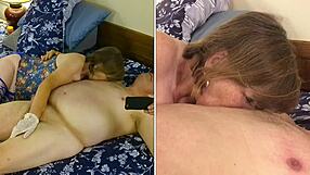 Granny Carmen Angel sucks and fucks hard. Homemade tit play and cum orgasm.