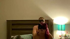 screaming passionately at halloween as sexy girlfriend sucks him off hard