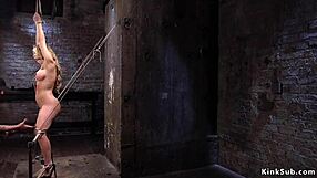Busty blonde sub intensely toyed in suspension
