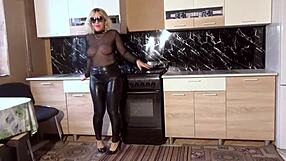 Mature latex fetishist seduces young university lover