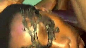 Exkluzívna MMF trojka: Štíhla ghanská teen 18+ drie v pičke a ústach od nevlastného otca a brata s výstrekom spermy
