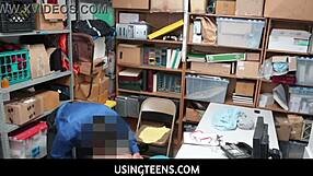White Officer Roughly Fucks Black Teen Shoplifter's Pussy in Office After Bust