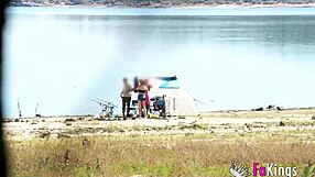 young guy spies naked milf sunbathing on river bank in public