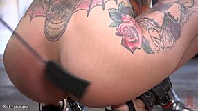 How does this tattooed slave with huge tits handle rough bdsm gangbang pounding?