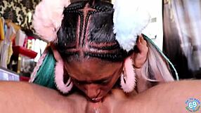 Young ebony gives sloppy head