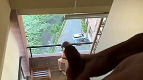 Intensely fucked neighbor's huge ass on balcony, creampie