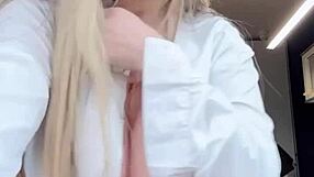 Blonde secretary fingers asshole and squirts at work
