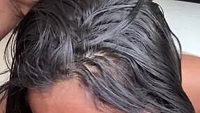 Škandinávska milfka líže gule s kvapkajúcim sperma