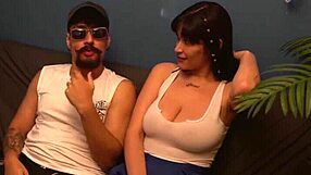 See-through top bares huge tits in dressing room