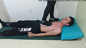 Mistress emma stomps her slave senseless in new sneakers trampling hard without mercy