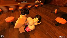 Detailed scene of a random guy fucking me hard in the sports bar, cumming on Hanif and Adori