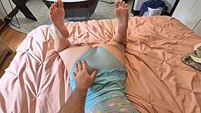 This homemade session features a bare footjob ending in a big cumshot.