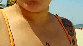 wifey flashing her tits at the beach