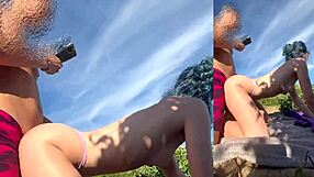 Göğüslü olgun kadın plajda yabancının dev memelerini yemesine izin veriyor