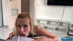 Skinny blonde virgin anna stretches her tight ass in cowgirl riding and cums hard during first casting interview