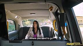 Female fake taxi driver’s big boobs spark hot passenger encounter