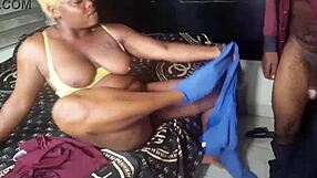 Black African Lesbians Kiss and Lick Natural Tits Roughly in Bathroom