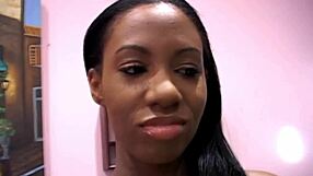 this black teen ebony babe drops to knees for interracial blowjob action