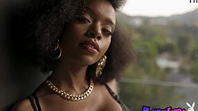 Whoa classy ebony teen Noelle Monique strips sensually in stockings!