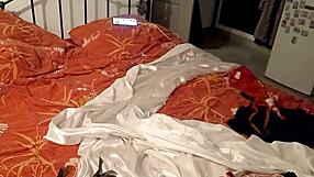French slut in red satin bodysuit gets pussy licked rimmed then fucked doggystyle hard