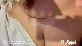 horny arab milf wife fingers hairy pussy flashes big natural tits on webcam