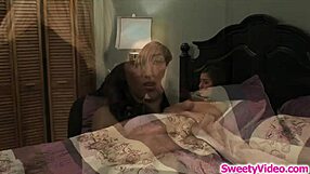 Petite teen licks milf maid hairy pussy on big natural tits!