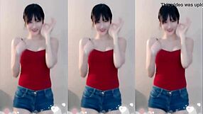 cute chinese girl dances up and down seductively