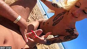 Kiimainen kundi himoitsee anaalia blondin kanssa syrjäisellä rannalla