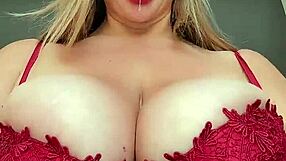 this blonde milf is shaking her huge boobs so sexy