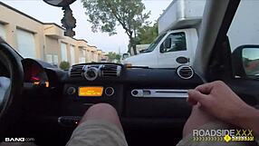 Roadside outdoor sex with brunette mechanic in cowgirl