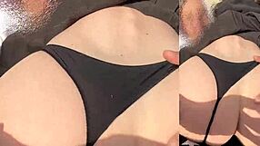 Real escort with huge tits cums while riding in public