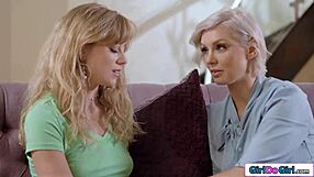 Blonde Destiny Cruz Masturbates Her Husband's Lesbian Lover Laney Grey In 69 Position