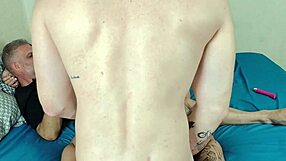 My lover surprises me with first double penetration using thick dildo.