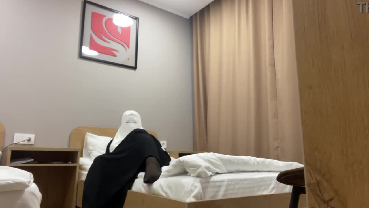 turkish woman with beautiful eyes in hijab masturbates in pantyhose