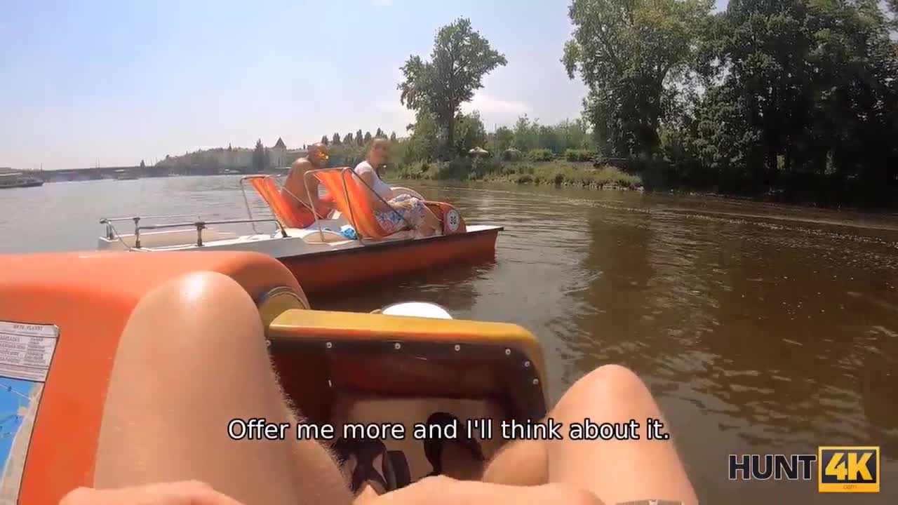 Rich hunter picks up beautiful gypsy girl for outdoor pussy watching