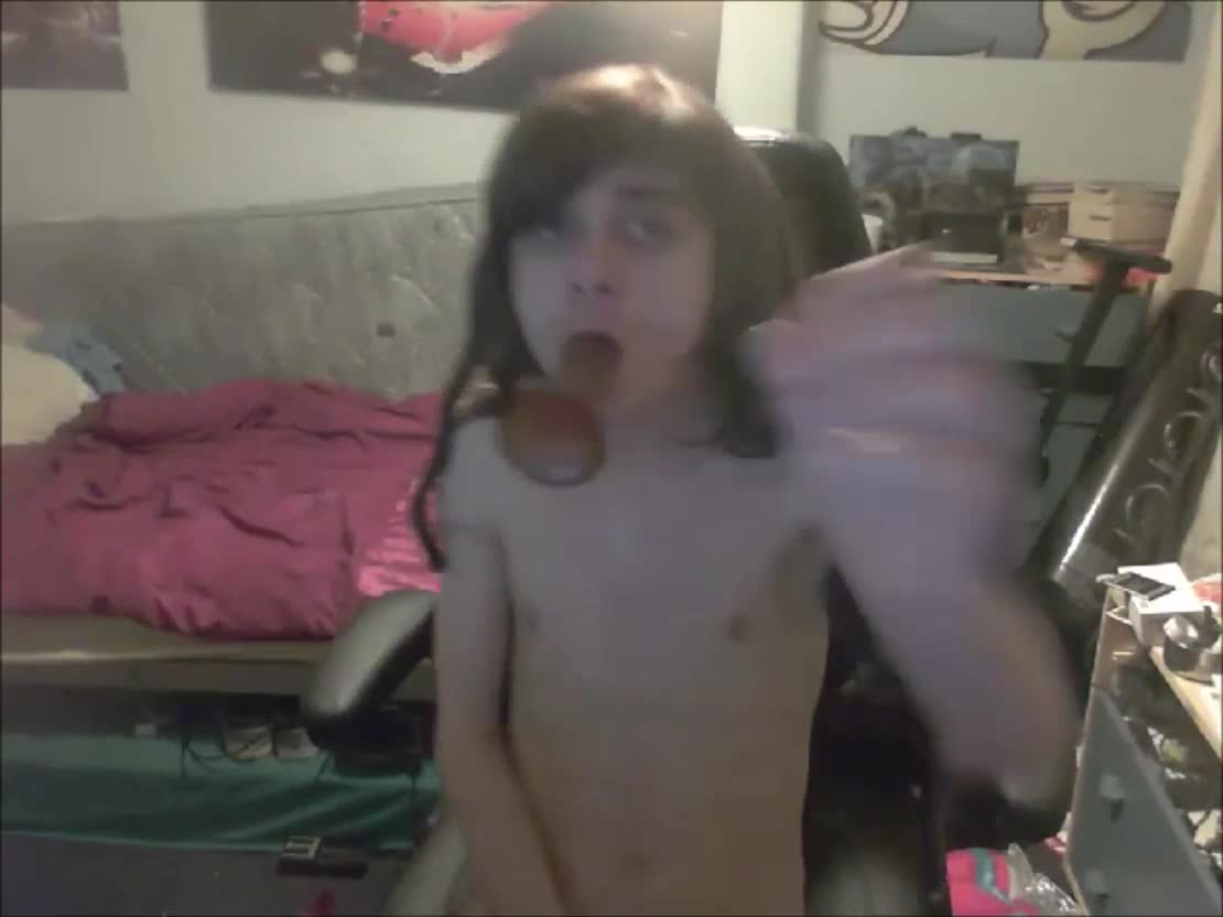 Teen ginger tranny provocatively blows her own cock on webcam
