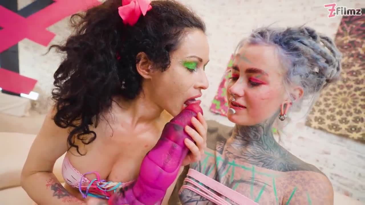 Two Adorable Lesbians In Stockings Play With Dildos And Reach Intense Orgasm