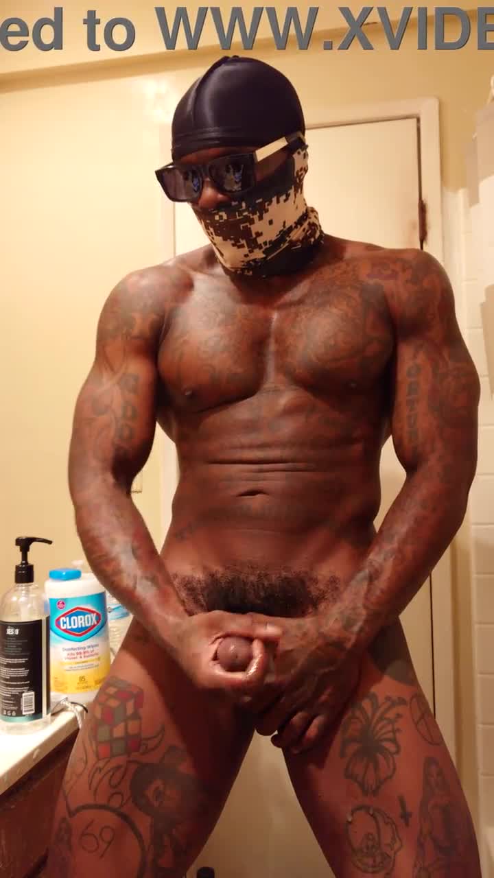 Hallelujah Johnson worships his big black cock, stroking and cumming while watching you